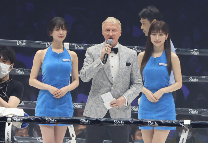 人気の雪平莉左とともにリングに上がる新唯(左)