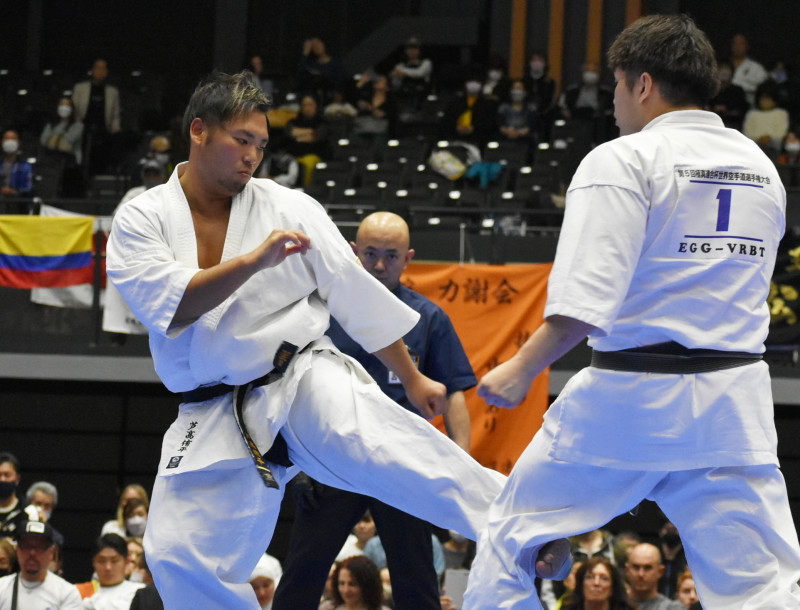 優勝の芦髙(右)が決勝強力な下段蹴り