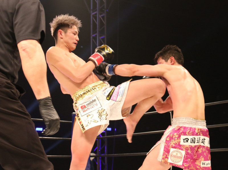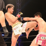 ヒザ蹴りで攻める久井(2023年3月)