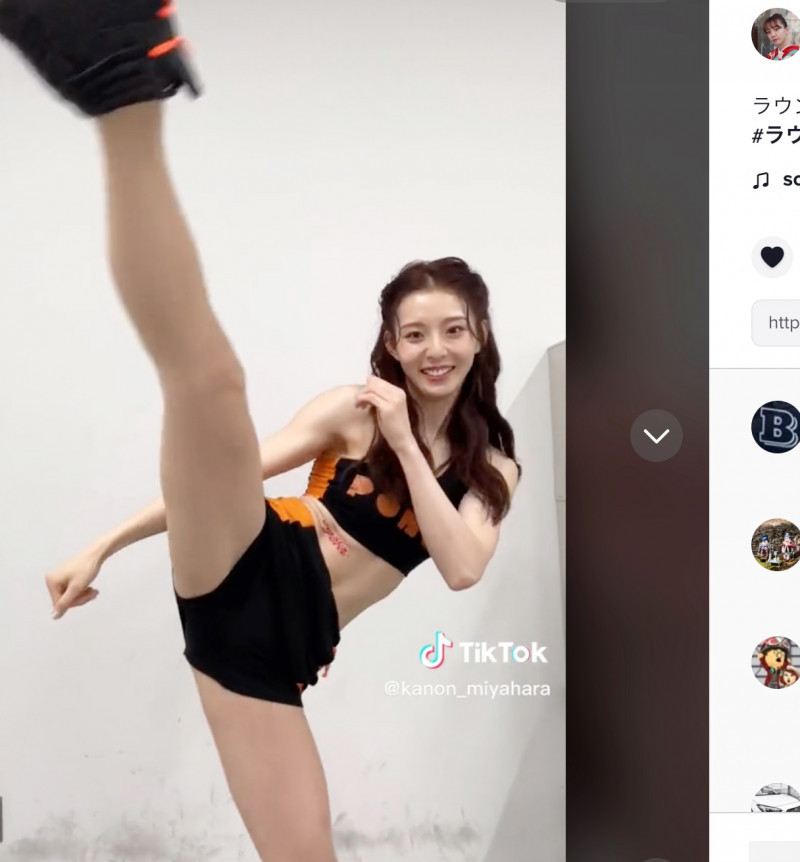 ラウンドガール衣装でハイキック(宮原華音TikTokより)