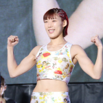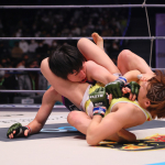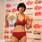 伊澤がビキニ姿でマッスルポーズ(21年12月RIZIN)