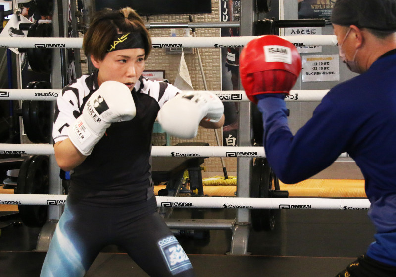 那須川会長が持つミットで快音を鳴らすV.V Mei