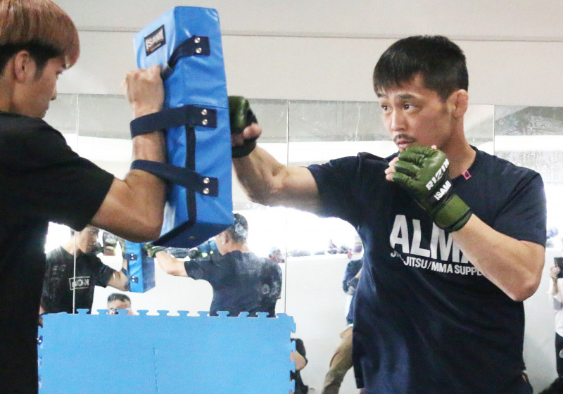 ミット打ちで快音を響かす牛久