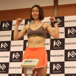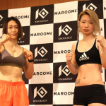 計量後に並ぶ坂本瑠華(右)と松藤麻衣