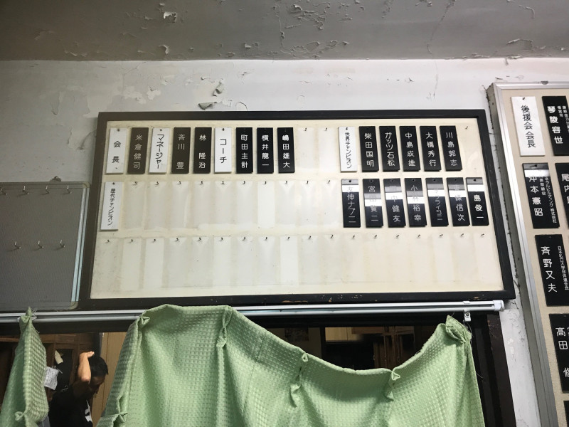 ジムにはガッツ石松、大橋秀行など歴代世界王者の名札がかけられていた