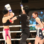 右を当てて後、拳を引いた宮原。空手の引きの動きを見せた