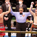井岡のパンチがフランコにヒット!
