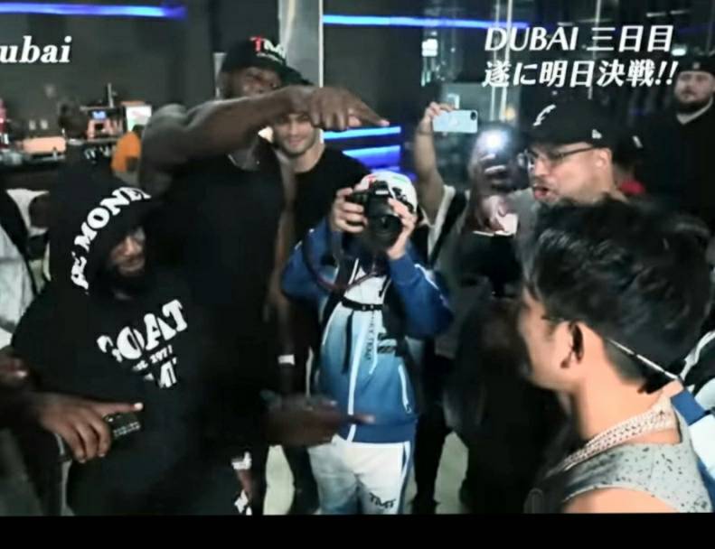 メイウェザーと皇治が向かい合う(皇治YouTubeより)