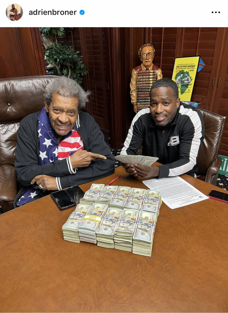 ブローナー(右)が、ドン・キング(左)と札束を積み上げにっこり @adrienbroner