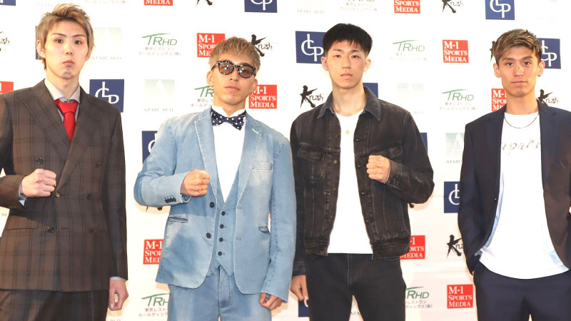 Krushスーパー・ライト級王座決定トーナメントに臨む(左から)塚本拓真、小嶋瑠久、稲垣柊、寺島輝(C)K-1