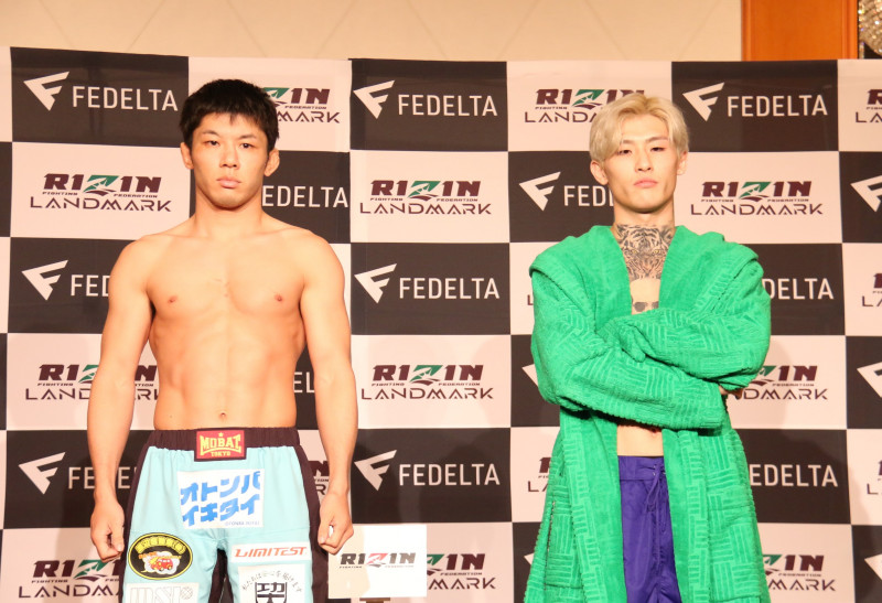 斎藤裕(左)と平本蓮(右)が計量パス