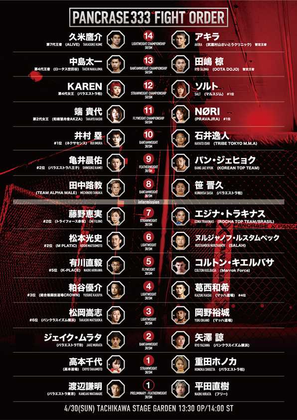『PANCRASE 333』対戦カード