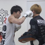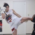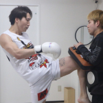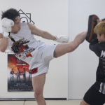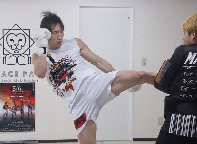 強烈なミドルを叩き込む安保
