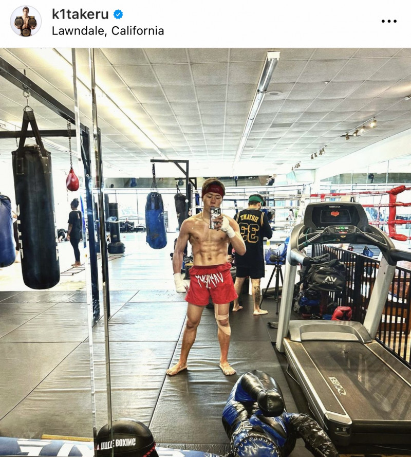 アメリカ合宿時のバキバキの肉体 アメリカでは青木真也ともスパーリングを行った @k1takeru