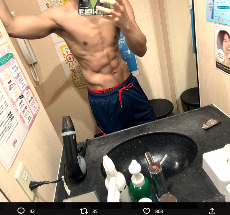 二日前にバキバキ腹筋を披露したYA-MAN(@ya_man_shibuya)