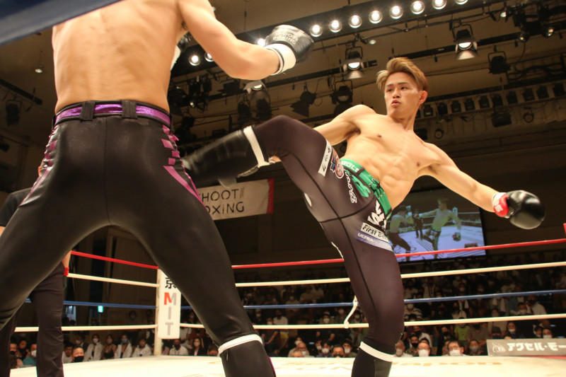 蹴りを放つ奧山貴大(2022年6月)