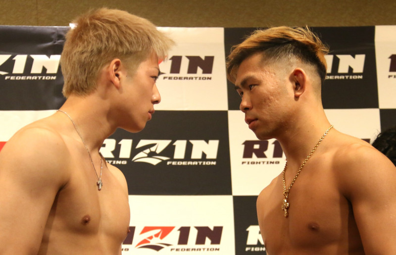 前日計量で危険な睨み合いをしたYA-MAN(右)と三浦(左)