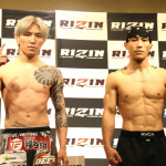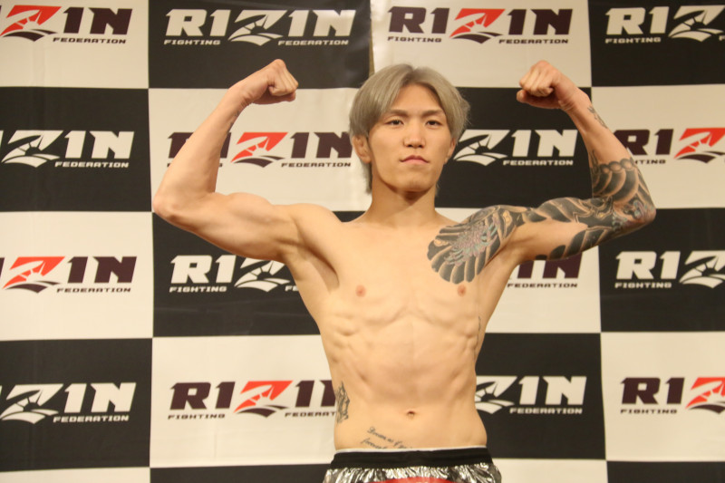 伊藤はマッスルポーズで計量パス