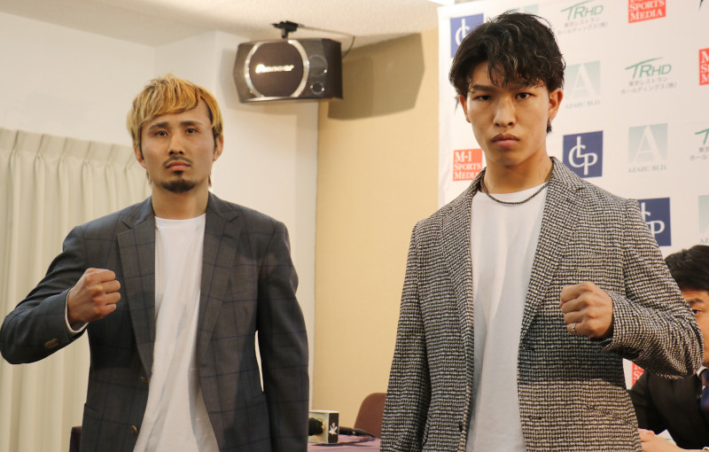 対戦する新美(左)と寺田(右)
