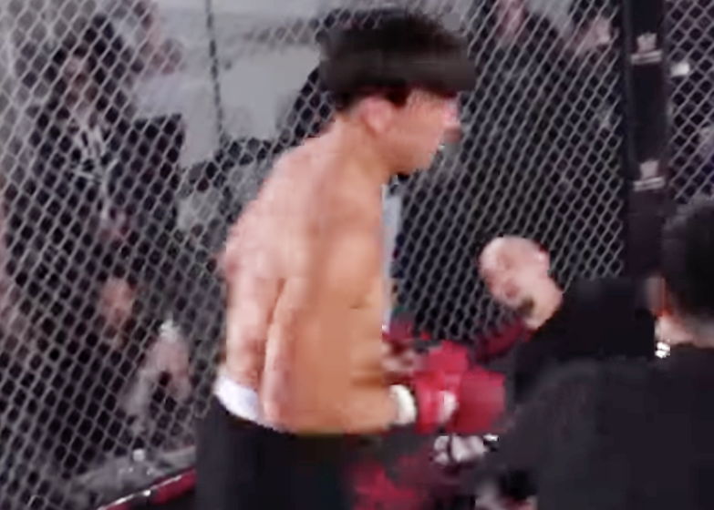 一撃KO!相手がバッタリ倒れる(朝倉未来Youtubeより)
