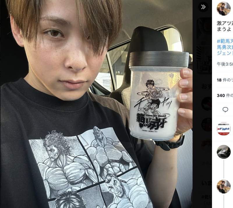 彼女の愛用の範馬刃牙のプロテイン(出口クリスタTwitter @10CMD29より)