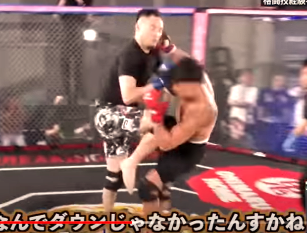 丸田は飛びヒザでの奇襲攻撃を仕掛けた(『あきべぇチャンネル』)