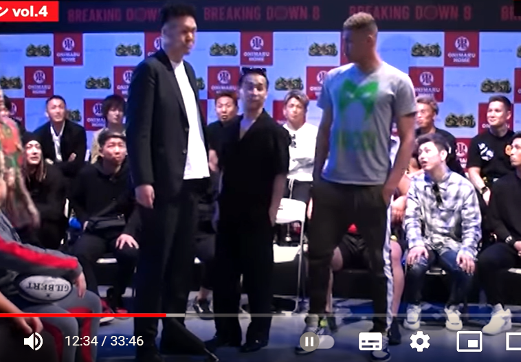 エドポロキング(右)とOSA BIG(左)に並んだこめおは、大人にはさまれた子どものようだ(『朝倉未来』YouTubeチャンネル)