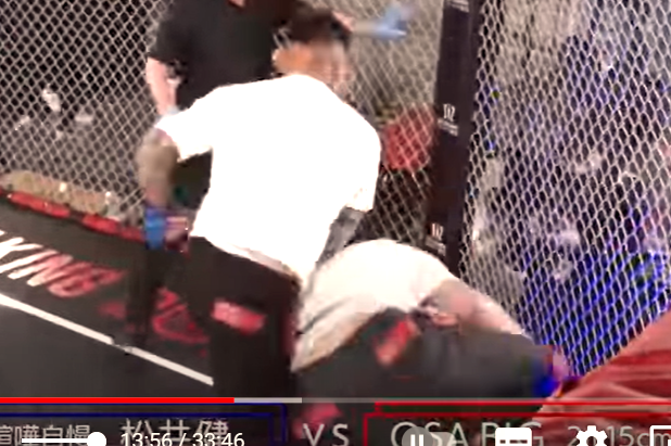 松井の右フックで倒れるOSABIG(『朝倉未来』YouTubeチャンネル)