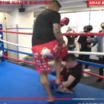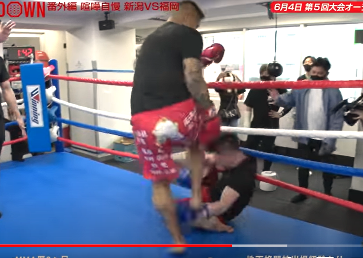倒れた相手にサッカーボールキック(『朝倉未来』YouTubeチャンネル)