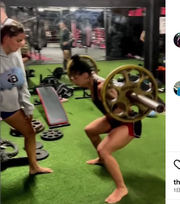 バーベルスクワットで腰を落とすアリシア@allycia_phuketfightclubより