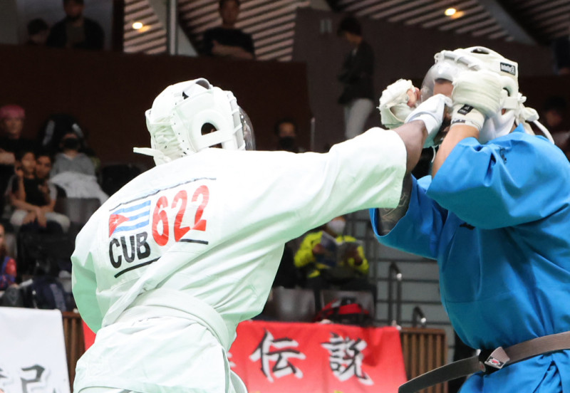 準決勝、ブラジル選手に強烈な右フックがヒット!