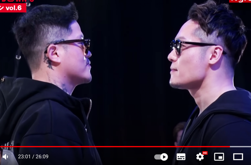 日韓戦の“大将戦”で激突する飯田将成(右)とパク・ウォンシク(左)が睨み合い(朝倉未来公式YouTube)