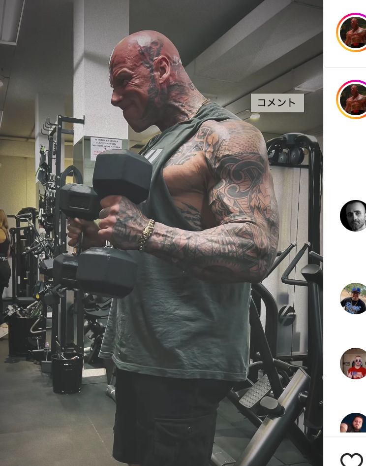 高重量ダンベルカールをするフォード@martynfordofficial