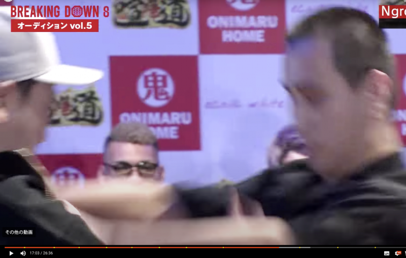 オーディションで突き飛ばすこめお(朝倉未来Youtubeより)