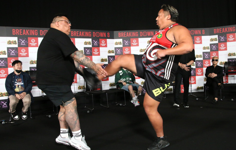 会見でノッコンが前蹴り攻撃(朝倉未来YouTubeより)