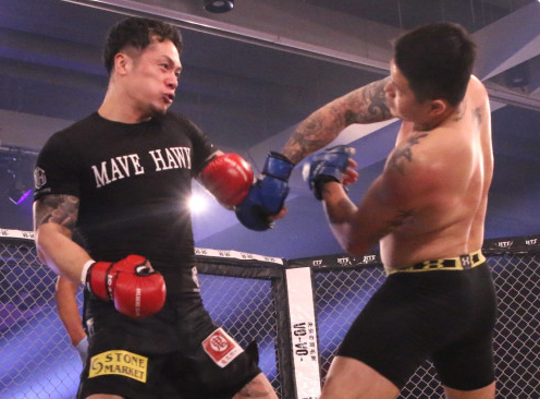 打ち合いに持ち込みたい飯田が、僅差をものにした