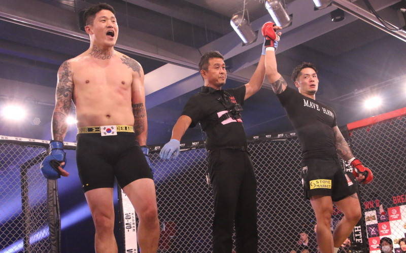 判定3-2で飯田。ウォンシクは不満顔で声をあげた
