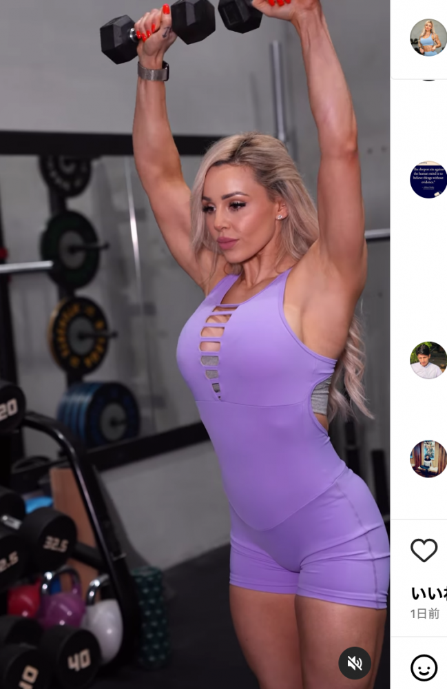 ダンベルを垂直に上げるサンゾ@stephaniesanzoより