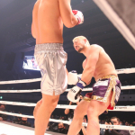 南原のヒザ蹴りで崩れる愛鷹