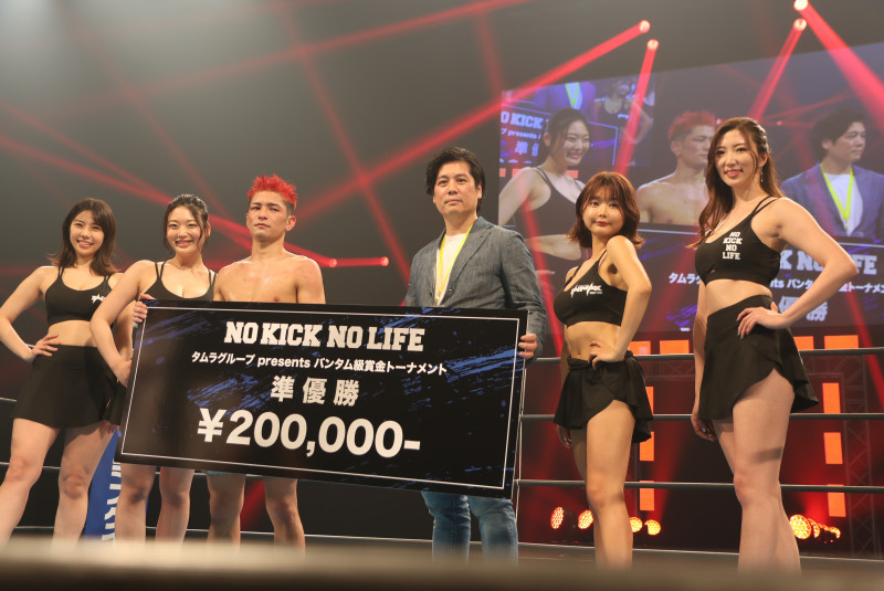4人のラウンドガール、左から鈴⽊ふみ奈、⾵吹ケイ、藤⽥もも、松嶋えいみ