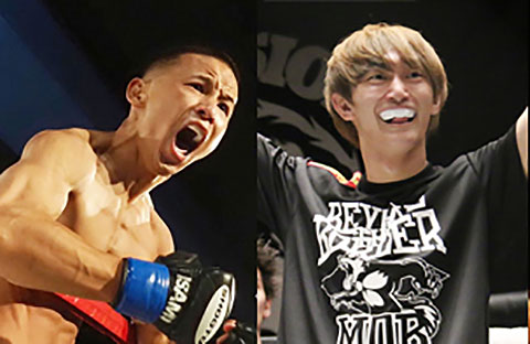 新井丈(左)が安芸柊斗(右)と対戦する