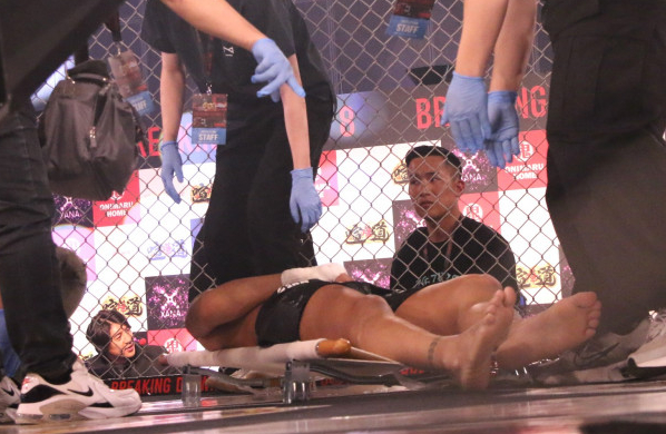 担架で運ばれる外枦保