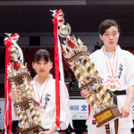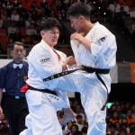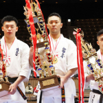左から他流から代表に決まった後藤優太(空手道MAC)、新極真から入来建武と鳥原隆司