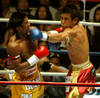 打ち合うブアカーオ(左)と魔裟斗(2007年10月)