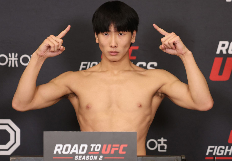 人差し指を突き出しマッスルポーズを決める鶴屋© Zuffa LLC/UFC