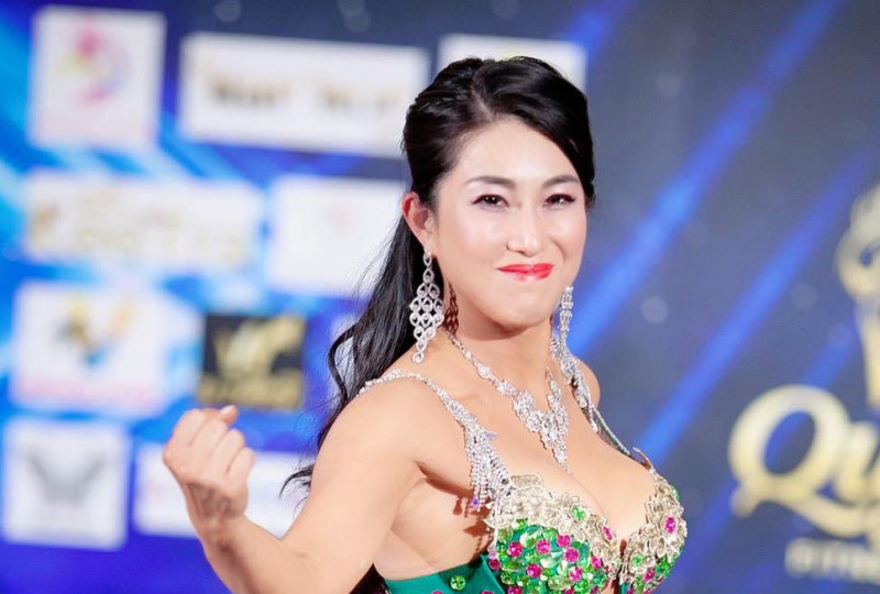 歌手の前田瑠美さんが何とフィットネスモデル国際大会で極真空手の型を披露!(本人提供)