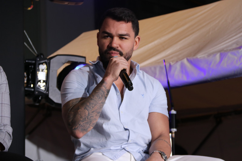 会見でコメントするパトリッキー・ピットブル・フレイレ