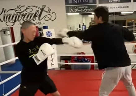 ひかぴーは、マススパーで啓之輔のジャブをもらう(『啓之輔.けいチャンネル』)