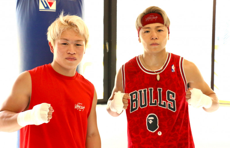7月17日K-1両国大会で岩尾力と対戦する武尊の後輩の晃貴(左)も紹介された