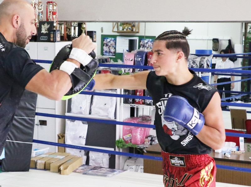 アラブの16歳の神童、ラマダンが速射砲のようなキレッキレのミット打ちを見せた(c)K-1